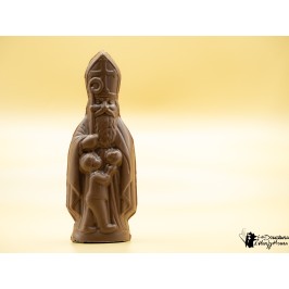 Grand Saint-Nicolas creux de 18 cm en chocolat noir ou lait, avec option fourrage caramel croquant maison.