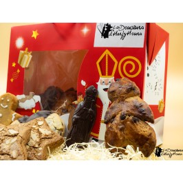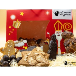 Box Enfant limitée (16 ex.) : assortiment gourmand avec bonhomme, chocolats, massepain, spéculoos et cookies.