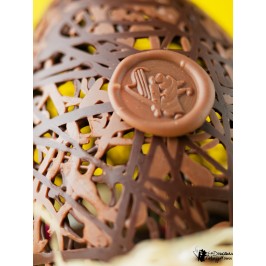Une pièce d'exception ! Le Nid est un œuf graphique et aérien, délicatement dessiné par l'entrelacement de filets de chocolat noir et lait. Un écrin artistique qui cache en son cœur une pluie de gourmandises.