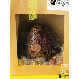 · Composition : Structure en chocolat noir et lait, œufs fourrés assortis.