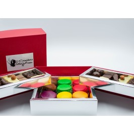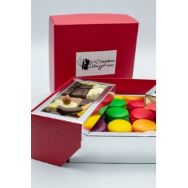 Un coffret gourmand composé de 9 macarons artisanaux et de 200 g de chocolats de notre collection, pour une Saint-Valentin tout en douceur.